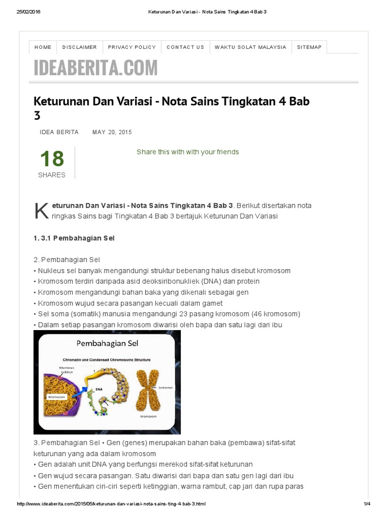 Keturunan Dan Variasi Nota Sains Tingkatan 4 Bab 3 Pdf