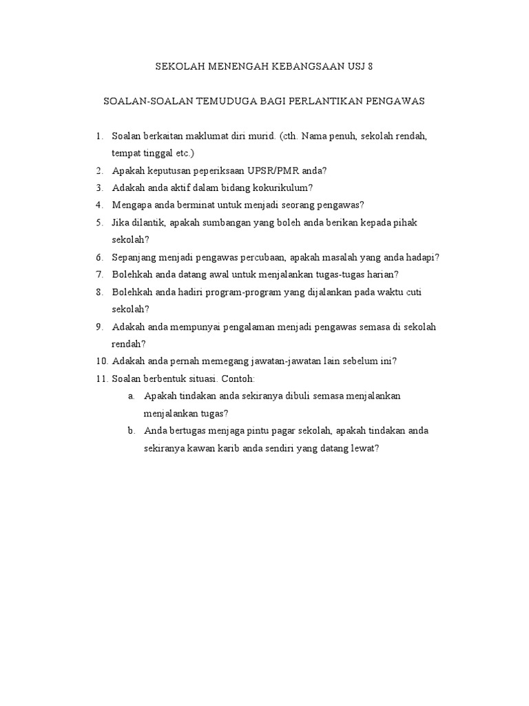 Up to 3 cash back Contoh Soalan Temuduga. Calon hanya perlu tahu beberapa perkara yang sepatutnya.